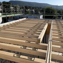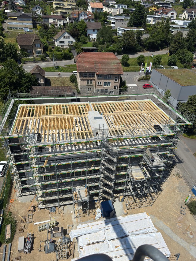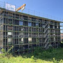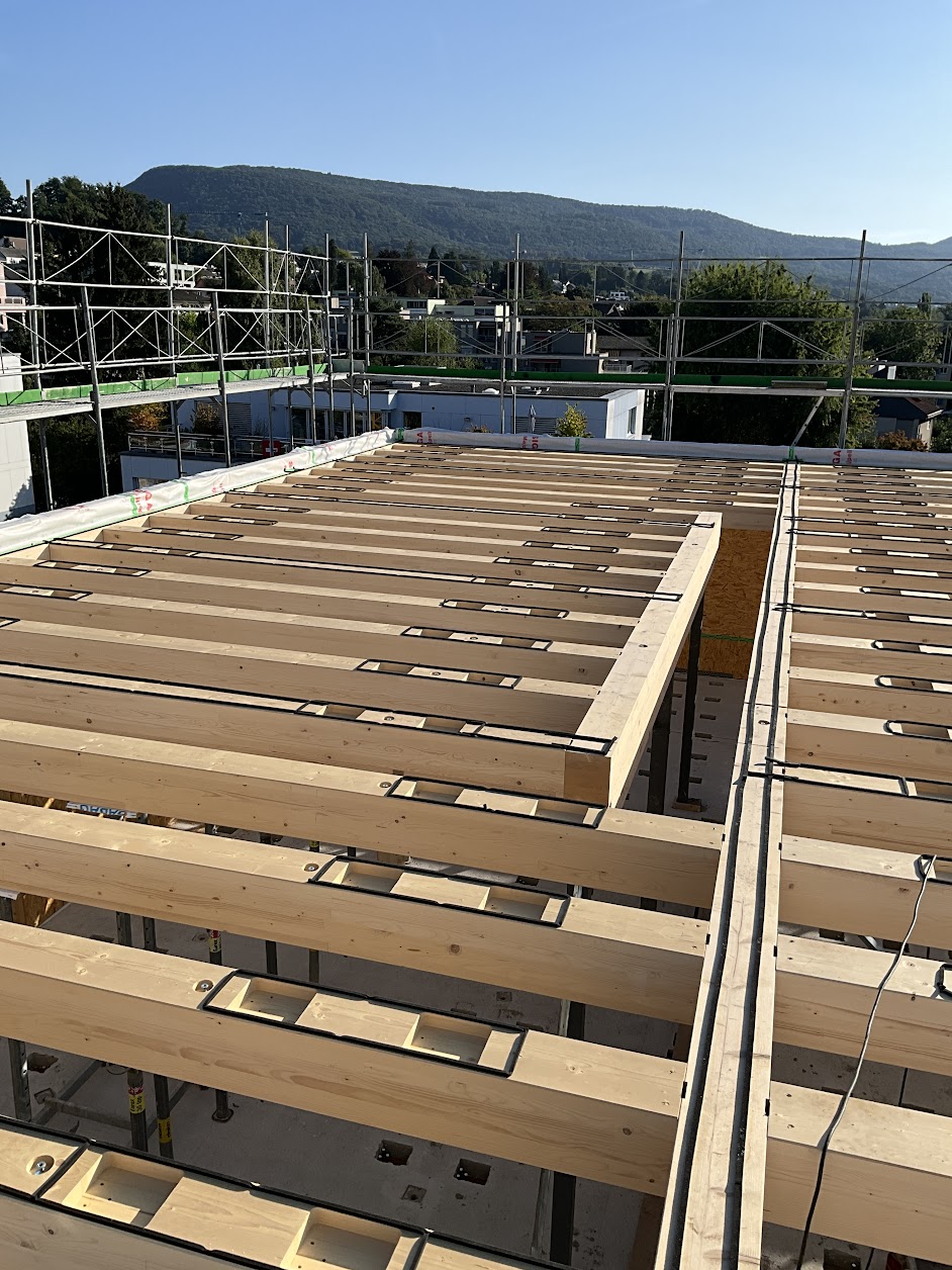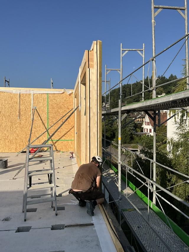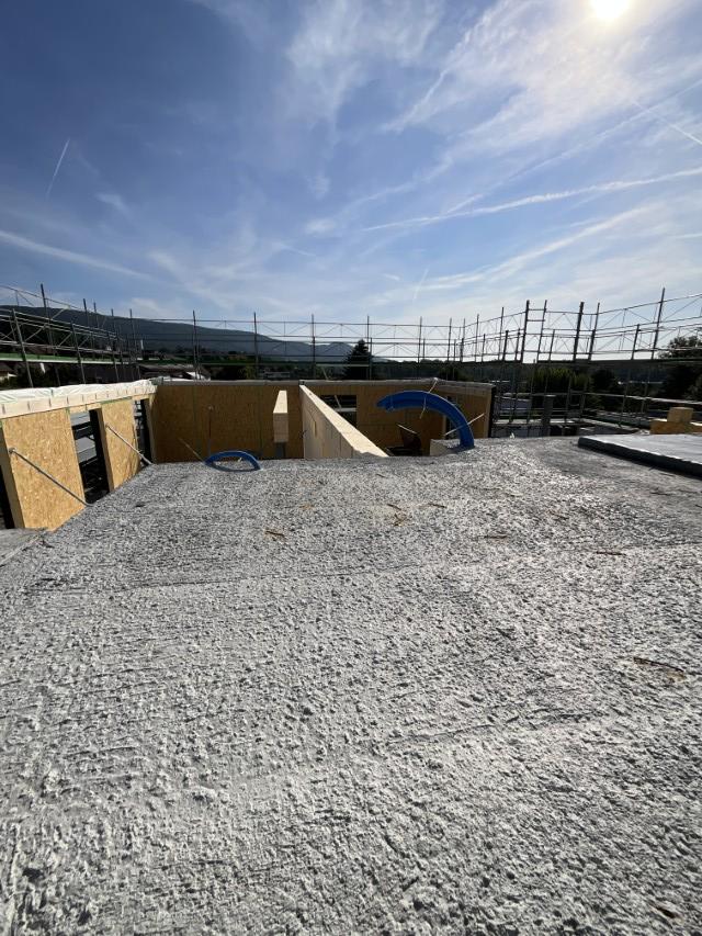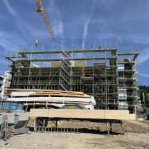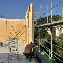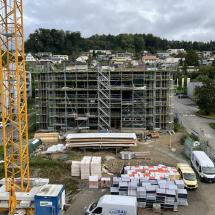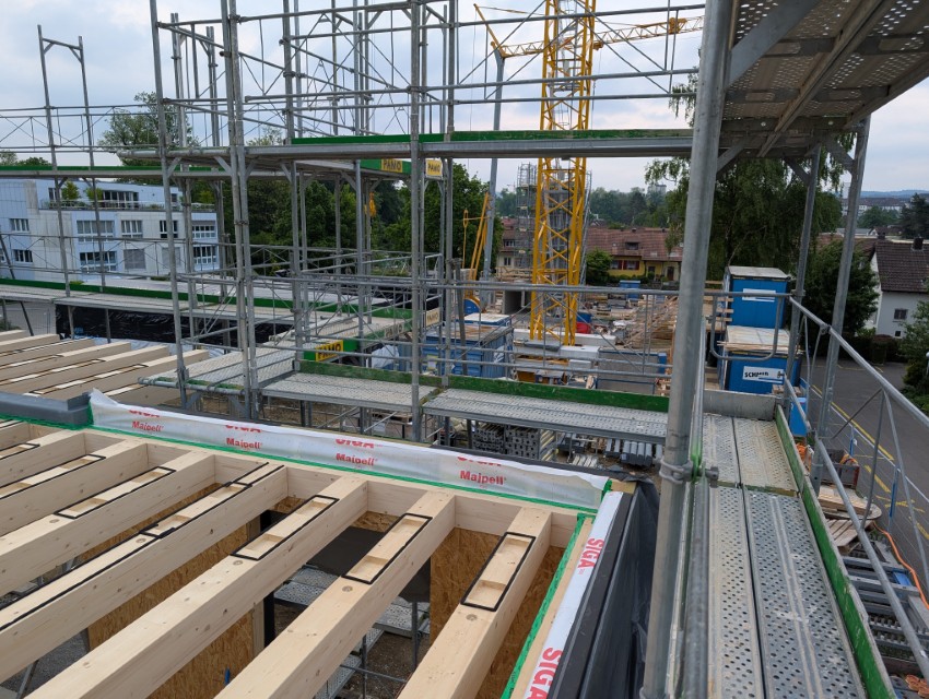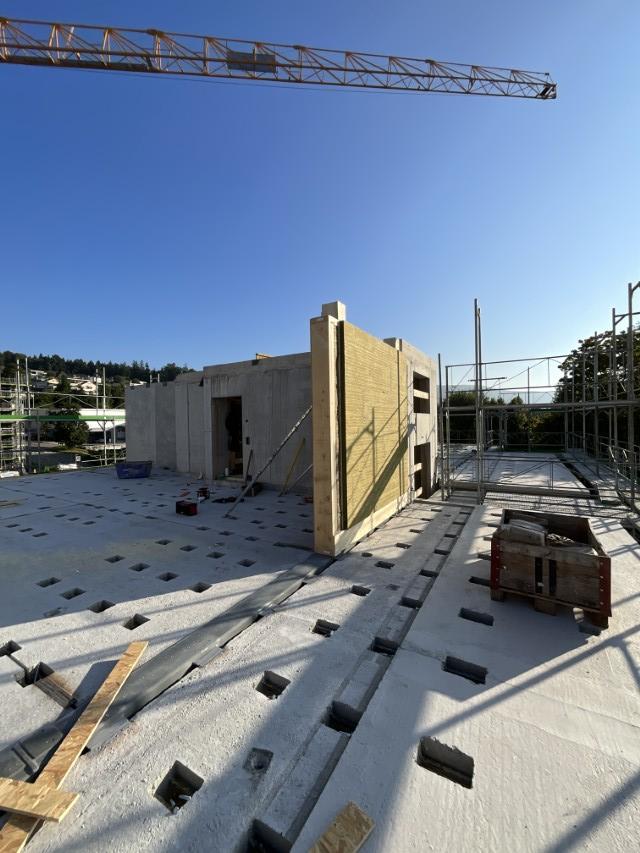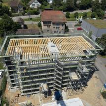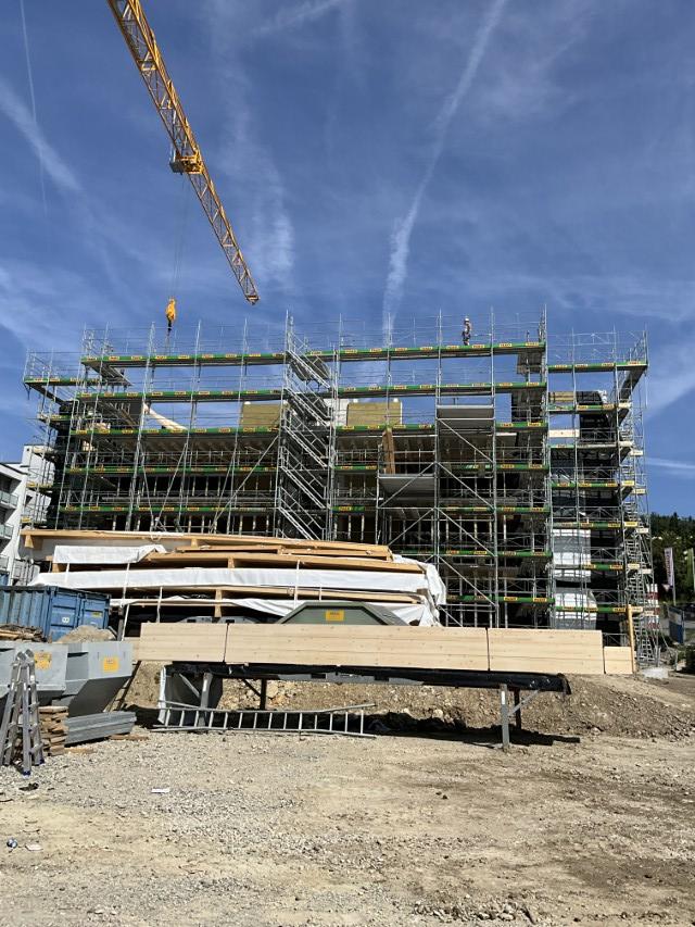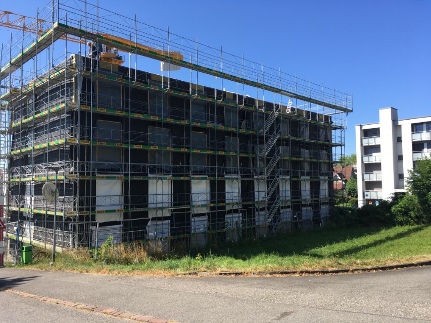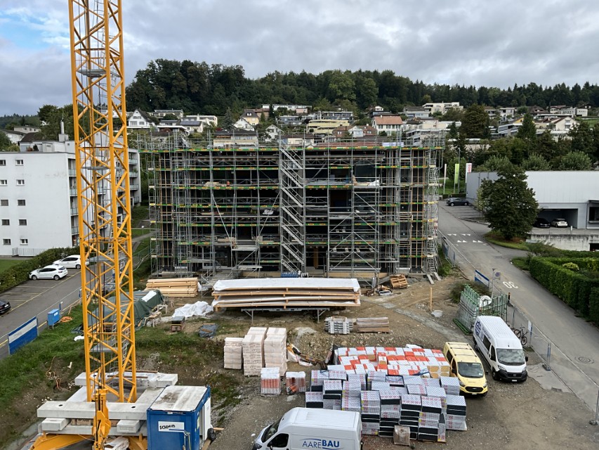 In Rombach entstehen zwei Mehrfamilienhäuser - ein Montagebau in Holz mit einer Holzfassade - mit insgesamt 16 Wohnungen. Diese Neubauten werden in MINERGIE ECO erstellt.