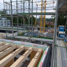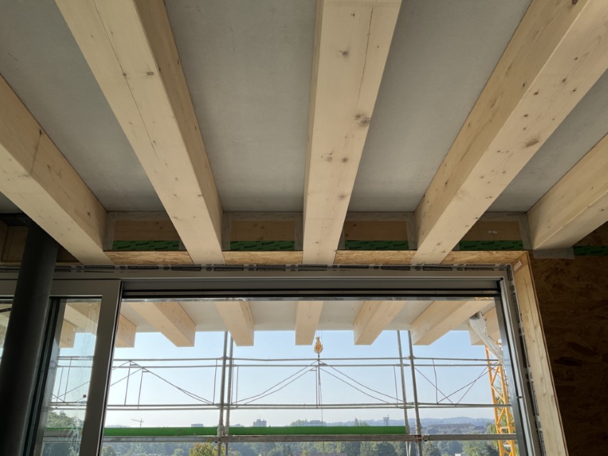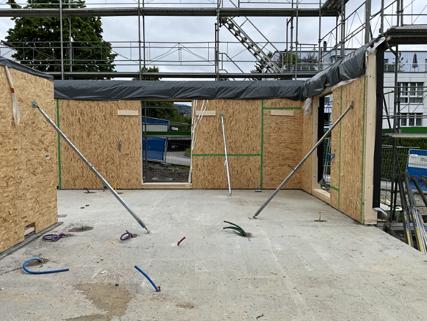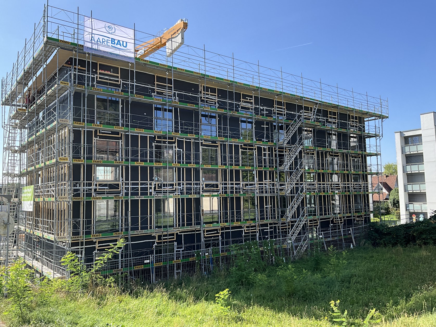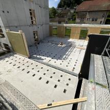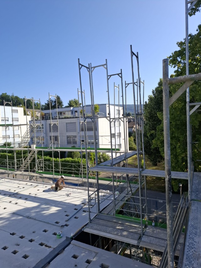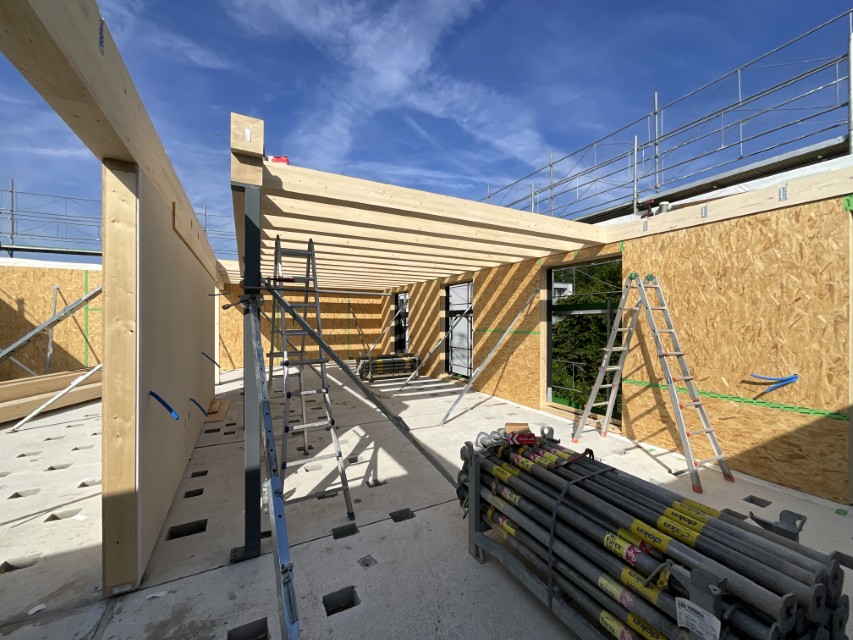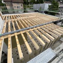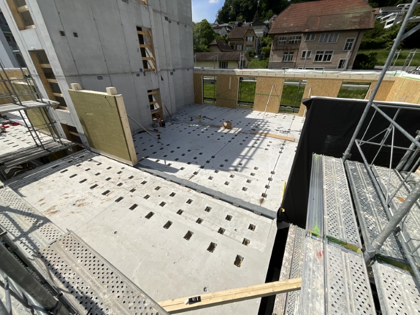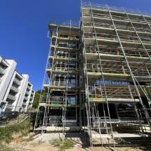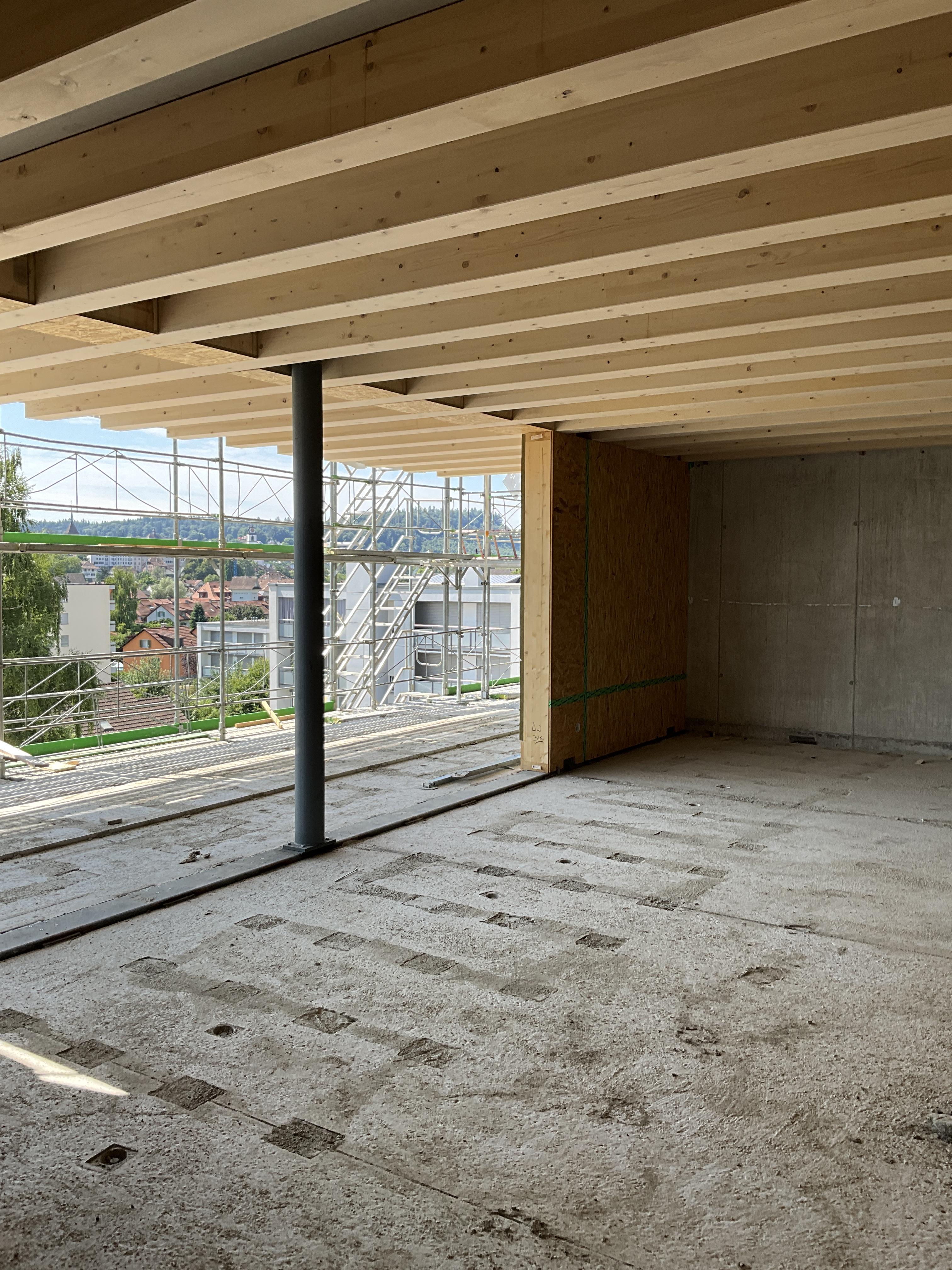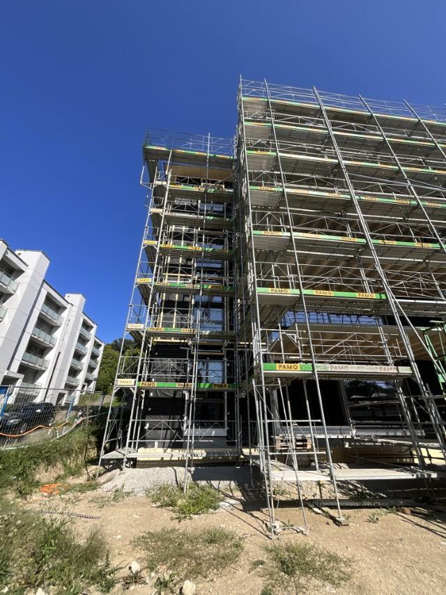 In Rombach entstehen zwei Mehrfamilienhäuser - ein Montagebau in Holz mit einer Holzfassade - mit insgesamt 16 Wohnungen. Diese Neubauten werden in MINERGIE ECO erstellt.